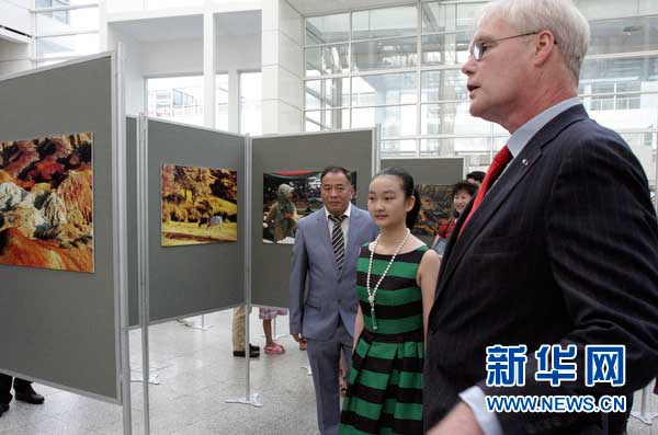 国际摄影联盟荷兰分会理事威廉·文尔森(左)向朱家莹(右)赠送摄影作品集