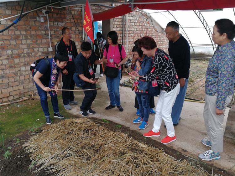 嘉宾们在永宁县闽宁镇的闽宁农业创客空间合影留念。宁夏银川市永宁县闽宁镇面积56平方公里,辖6个行政村,人口约4.4万人,是一个移民开发区。帮助西海固地区贫困农民走出大山、脱贫致富、奔向小康。嘉宾参观了闽宁镇的观光农业、蔬菜种植等,了解这里农民脱贫致富的情况,对这里先进的种植技术和管理赞不绝口。