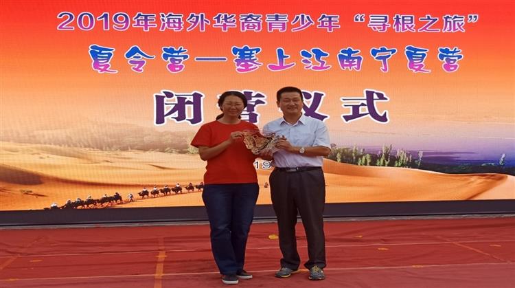 7月30日,由中国侨联主办、宁夏侨联承办的“2019年‘寻根之旅’夏令营—宁夏营”在宁夏银川举行闭营式,来自美国、英国、德国、奥地利等8个国家的90余名海外华裔青少年和老师在宁夏度过了10天短暂而充实的时光,即将带着与宁夏结下的深厚友谊返程。