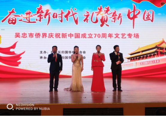 调研中,邵旭军副主席为吴忠市侨联成立进行了揭牌,出席了吴忠市侨界庆祝中华人民共和国成立70周年文艺演出活动。