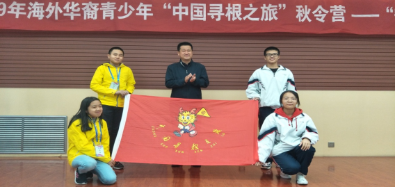 .jpg) 自治区侨联领导为秋令营授旗,海外华裔青少年与六盘山高级中学学生共同表演了文艺节目。