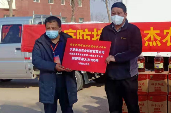 .jpg) 在疫情发生后,马俊杰捐赠价值2.2万元的军大衣100件,向吴忠市红十字 会捐款12426元,向一线司机捐赠价值1.5万元的口罩500个,为一线执勤人员 送去价值3000元的慰问品。多年来积极助力精准扶贫,在南部山区开展中草药 种植,种植银柴胡达21000亩,辐射带动农户2300多户,有效促进当地药农人 均增收,劳动力就地转移就业450人,解决了部分贫困家庭的就业问题。