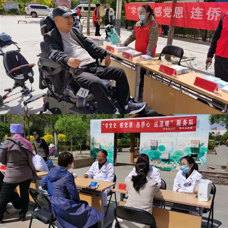 429日,自治区侨联组织银川市侨联开展学党史、感党恩、连侨心、送温暖医疗服务进基层活动。在自治区侨联副主席、银川市侨联主席李艳丽的带领下,由来自银川市中医医院、市第一人民医院、市口腔医院、市博康医院、灵武市人民医院的外科、内科、妇科、口腔科、眼科等11名知名专家、技术骨干共同组成医疗服务队,赴灵武市水木灵州社区200多位社区群众进行义诊,并送去3000多元的日常用药。活动现场,在自治区和银川市侨联志愿者的有序引导下,专家们现场为慕名而来的社区群众进行了常见病、慢性病咨询、初步筛查、诊断治疗医学常识和健康知识普及。义诊活动受到社区群众的一致欢迎和赞誉。