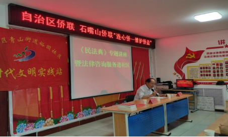 为贯彻落实“八五”普法和“我为群众办实事”等工作要求进一步做好侨界普法宣传和维护侨益工作, 9月9日,宁夏侨联、石嘴山市侨联邀请石嘴山市侨联法律顾问——宁正律师事务所赵家鹏律师,深入大武口区青山街道裕园社区开展“连心侨—维护侨益”法律进社区普法宣传活动。