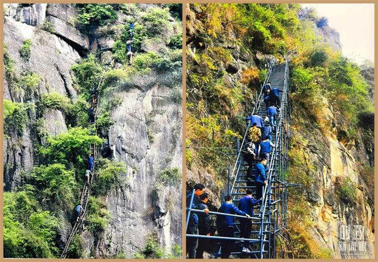 △益西达瓦委员展示的悬崖村对比图。(总台央视记者卢心雨、赵化拍摄)
