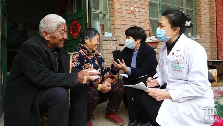 △2021年12月,河北邯郸,工作人员为村民讲解医保政策。(图/视觉中国)