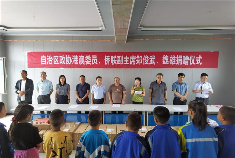 宁夏政协、宁夏侨联、宁夏党委港澳台办相关领导和处室负责同志,土峰村村委会和土峰小学师生参加捐赠仪式。