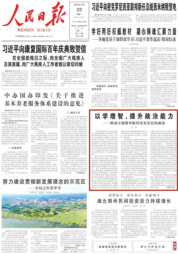“学习贯彻新时代中国特色社会主义思想主题教育正在全党深入开展,各级党组织务必在深入、扎实上下功夫,在以学铸魂、以学增智、以学正风、以学促干上见实效。”近日在听取陕西省委和省政府工作汇报时,习近平总书记深刻阐明“以学增智,就是要从党的科学理论中悟规律、明方向、学方法、增智慧,把看家本领、兴党本领、强国本领学到手”,并从提升政治能力、提升思维能力、提升实践能力三个方面提出明确要求?!度嗣袢毡ā房⑷僖粑恼?,围绕“以学增智”进行重点阐释。