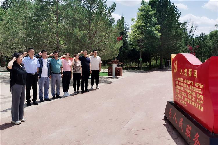 在盐池解放纪念碑前,全体党员面对党旗郑重地举起右拳,重温入党誓词,再铭不变初心。随后大家在讲解员的带领下参观学习了“红色沃土”“红色起源”“红色后援”“红色文化”“红色护卫”“光荣传承”六个部分的历史图片、实物及雕塑,聆听了革命先辈西征解放盐池、红色政权建立、军民团结生产等英雄事迹,切身感受革命先辈们开拓红色热土,抛头颅、洒热血,敢于牺牲的大无畏精神,接受了一场深刻的革命传统教育和党性教育。