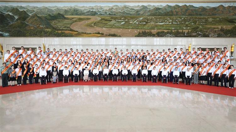 梁言顺、张雨浦、陈雍、庄严等接见受表彰的模范集体和个人代表,并与大家合影留念。