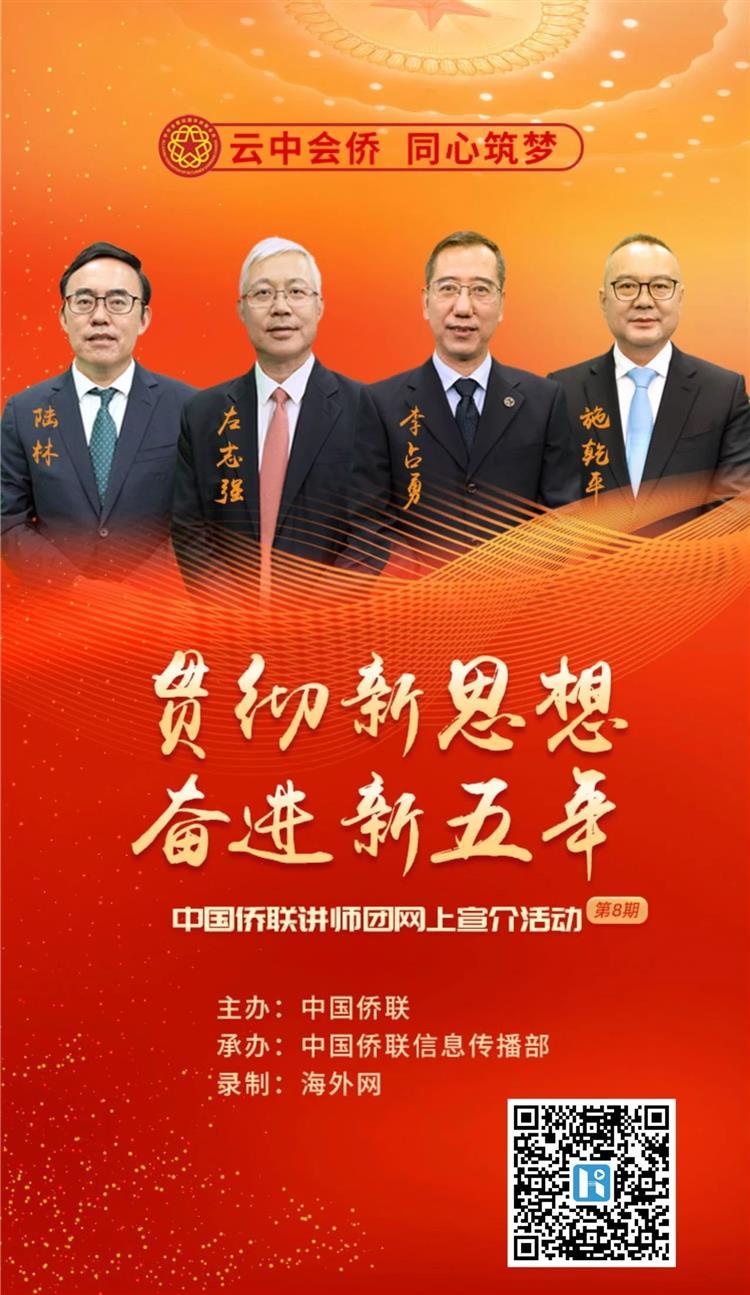 为深入学习贯彻习近平新时代中国特色社会主义思想,宣传阐释第十一次全国归侨侨眷代表大会精神,宣介中国侨联和侨联系统过去五年服务大局、服务侨胞所取得的成就和未来五年的工作重点,宣介归侨侨眷和海外侨胞典型事迹和先进人物,讲述他们与新时代同行的感人故事,加强思想政治引领、进一步凝聚侨心侨力侨智,更好汇聚海内外中华儿女的力量,为实现中华民族伟大复兴作出新贡献,中国侨联策划录制并即将推出讲师团网上宣介(第八期)视频。