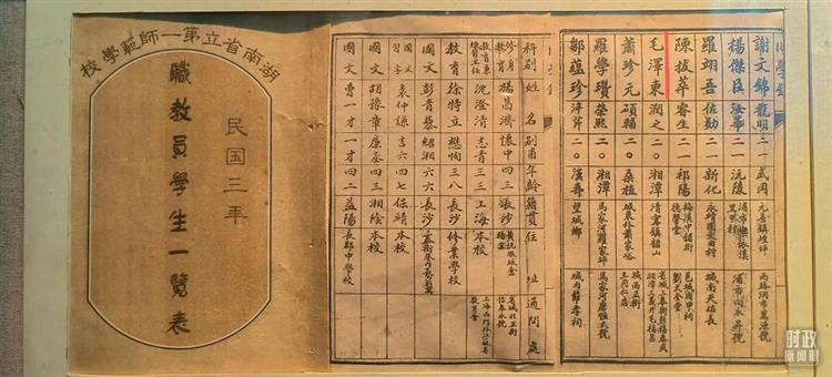 △1914年湖南公立第一师范学校教职员学生一览表。(总台央视记者范凯拍摄) 这里不仅是湖湘文化的重要发源地,更是中国革命的“红色摇篮”,走出了毛泽东、蔡和森、何叔衡、任弼时、李维汉等一大批革命先辈。 建校以来,湖南一师培养了12万余名优秀教师和其他各类人才。2008年,湖南省第一师范学校(专科)升格为湖南第一师范学院(本科)。学校现有38个本科专业,在校生2.2万余人。