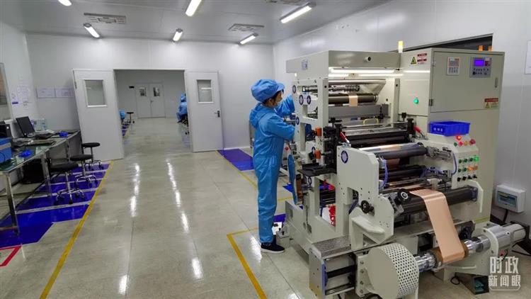 △企业员工将冷压后的极片裁出规定尺寸,用于锂电池制作。(总台央视记者郭鸿拍摄)