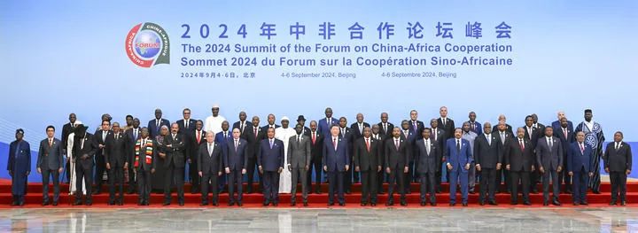 习近平同出席峰会的51位非洲国家元首、政府首脑以及2位总统代表,非盟委员会主席和联合国秘书长集体合影。