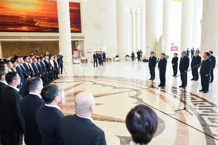 福建省党政代表团在图兰朵葡萄酒小镇,考察葡萄酒与文旅等多业态融合发展情况。