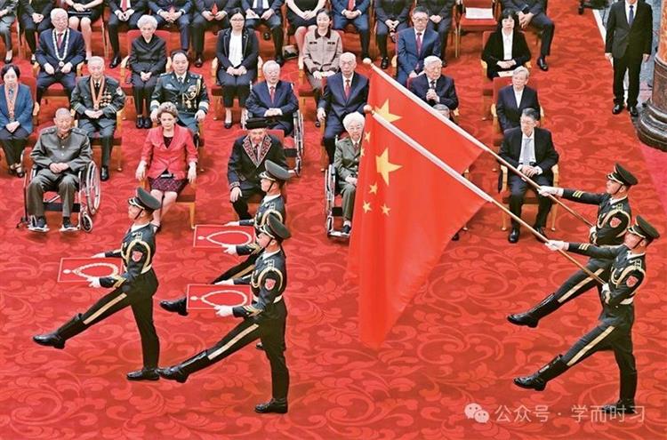 始终高举马克思主义的旗帜,不断推进马克思主义中国化时代化;坚定不移走自己的路,开创和发展中国特色社会主义……回望党的奋斗历程,从新民主主义革命时期到社会主义革命和建设时期,再到改革开放和社会主义现代化建设新时期,党之所以能够战胜一个又一个艰难险阻、夺取一个又一个伟大胜利、创造一个又一个人间奇迹,一个重要原因就在于始终坚持守正创新。 新中国成立75年来,中国共产党团结带领全国各族人民,创造了经济快速发展和社会长期稳定两大奇迹,中华民族伟大复兴进入了不可逆转的历史进程,全党全国各族人民“四个自信”明显增强、精神面貌更加奋发昂扬。2024年9月29日,中华人民共和国国家勋章和国家荣誉称号颁授仪式在北京人民大会堂金色大厅隆重举行。图为礼兵护送国家勋章和国家荣誉称号奖章入场。 新华社记者 岳月伟/摄