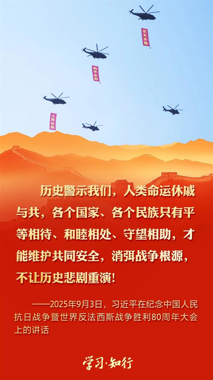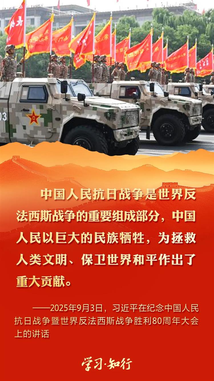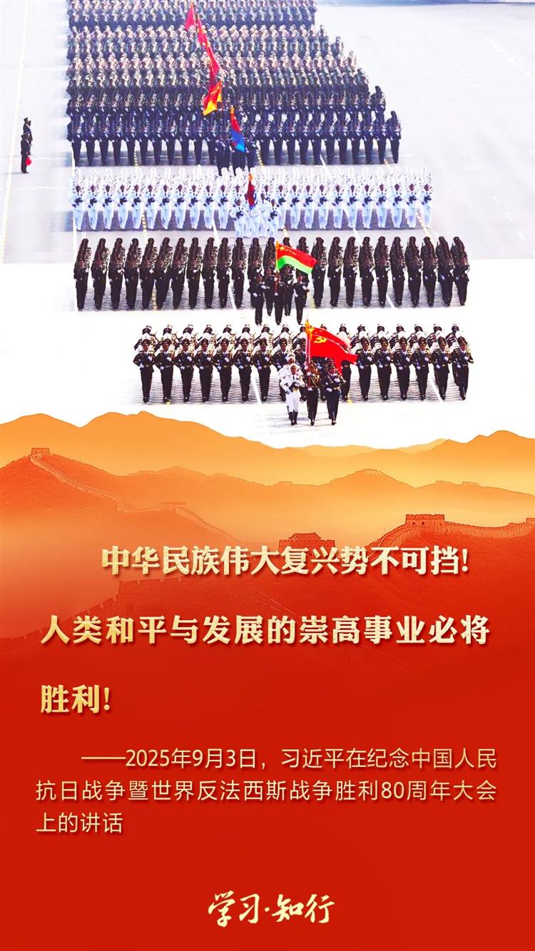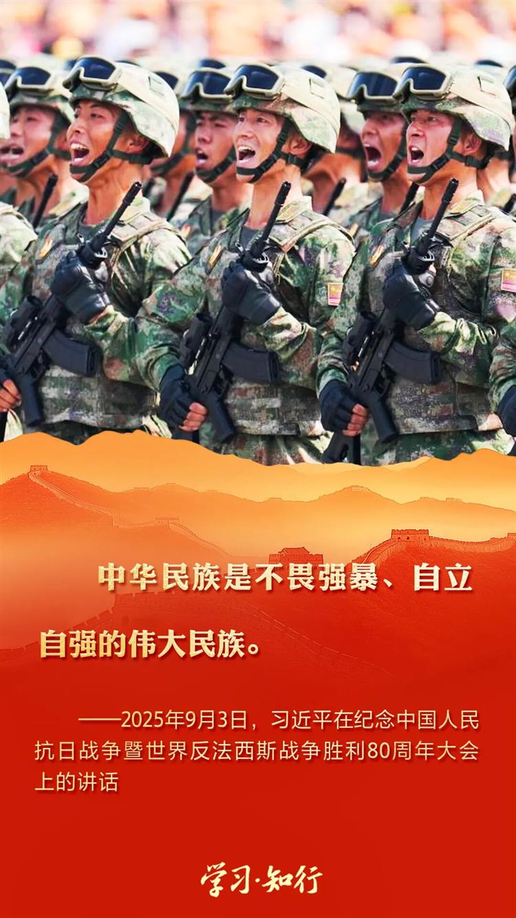 2025年9月3日,在纪念中国人民抗日战争暨世界反法西斯战争胜利80周年大会上,中共中央总书记、国家主席、中央军委主席习近平发表重要讲话。话语间声声有力、句句铿锵!