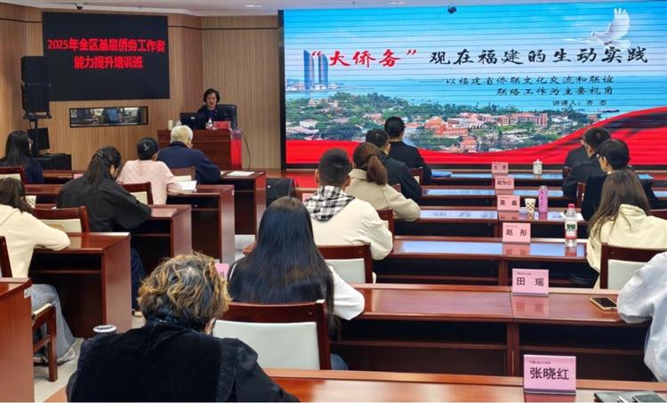 齐志副主席为宁夏基层侨务工作者能力提升培训班授课 齐志对近年来宁夏侨联工作取得的成绩表示赞赏,提议闽宁两省区侨联紧紧围绕深入贯彻落实党的二十届四中全会精神,共同研究落实闽宁协作第二十九次联席会议精神具体措施,以“闽宁协作”三十周年为契机,在弘扬嘉庚精神,加强基层建设,联系服务侨胞,涵养侨力资源,推动中华文化海外传播等方面加强交流、深化合作,共同推动侨联各项工作迈上新台阶,为促进两省区高质量发展注入更多侨动力。 11日,齐志一行先后来到文化出海明星企业宁夏智慧宫集团、“闽宁协作”企业宁夏正山堂生物科技有限责任公司、闽籍侨企宁夏董大福珠宝,详细了解企业发展历程、核心业务、市场布局与企业文化,对智慧宫布局“一带一路”、弘扬和传播中华文化表示由衷赞叹,尤其作为中宣部确定的重点外宣企业,引领了行业发展方向,为推动中华文化走出去迈出了成功的步伐;智慧宫积极融入“闽宁协作”,携手福建正山堂茶业有限责任公司,弘扬中华红茶文化,用茶叶、枸杞叶与茶文化创新引领生活方式,也将枸杞红茶传播到海外,向世界展现了中国茶与茶文化的独特魅力,展示了属于中国的文化自信。