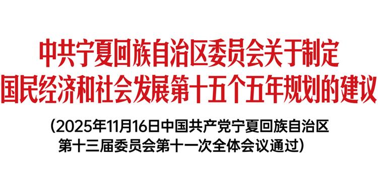 中国共产党宁夏回族自治区第十三届委员会第十一次全体会议认真学习贯彻党的二十届四中全会精神,坚决贯彻落实习近平总书记考察宁夏重要讲话精神,就制定宁夏国民经济和社会发展“十五五”规划提出以下建议。