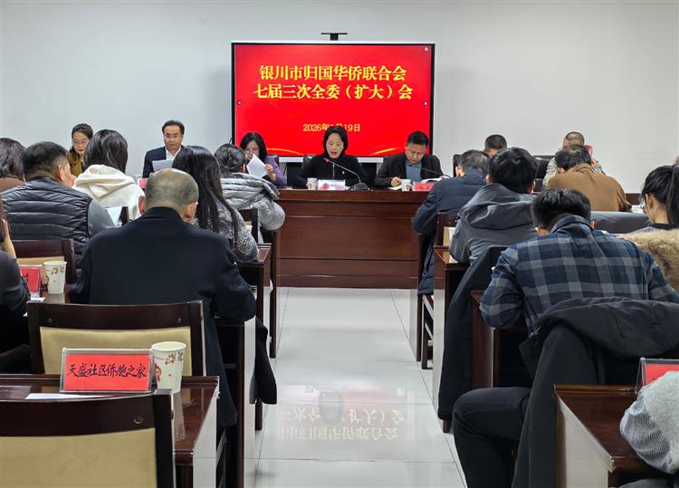 1月19日下午,银川市侨联召开第七届委员会第三次全委(扩大)会议。会议深入学习贯彻习近平新时代中国特色社会主义思想,全面落实中国侨联十一届四次全委会议和自治区侨联八届九次全委会议精神,审议并通过《银川市侨联第七届委员会2025年度工作报告》,研究部署2026年重点工作任务。市侨联委员、基层侨联负责人及侨界代表共50余人参加会议。