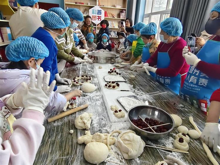 活动现场暖意融融,面粉、酵母、各色果蔬粉等食材整齐陈列,工作人员手把手向大家讲解花馍揉面力度、塑形技巧与点缀要点。归侨侨眷和社区居民围坐一堂,一双双巧手在面团上灵动翻飞,原本朴实无华的面团瞬间“变身”——层次叠叠的传统枣花馍,寓意着岁岁平安、吉祥如意;憨态可掬的彩色小猪馍、展翅欲飞的老鹰馍,充满童真童趣与灵动创意。活动还设立便民服务区提供免费磨刀、磨剪子、理发等便民服务,让大家在体验民俗乐趣的同时,收获实实在在的便利。